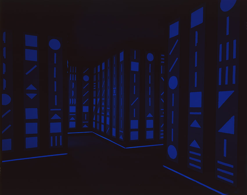 Material: Holz, Büttenpapier mit aufgegautschten Zeichen, Neon